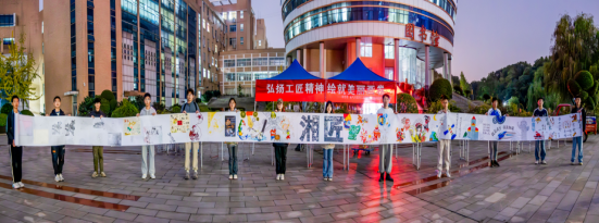 为丰富校园生活,弘扬工匠精神,11月14日下午,由我校团委主办,电气与信息工程学院、设计艺术学院共同承办的“弘扬工匠精神 绘就美丽画卷”活动在知行广场举行。一群青春飞扬的湖工学子手执五彩画笔,将工匠们的事迹和精神汇聚笔尖,绘就成长20米的巨幅画卷。