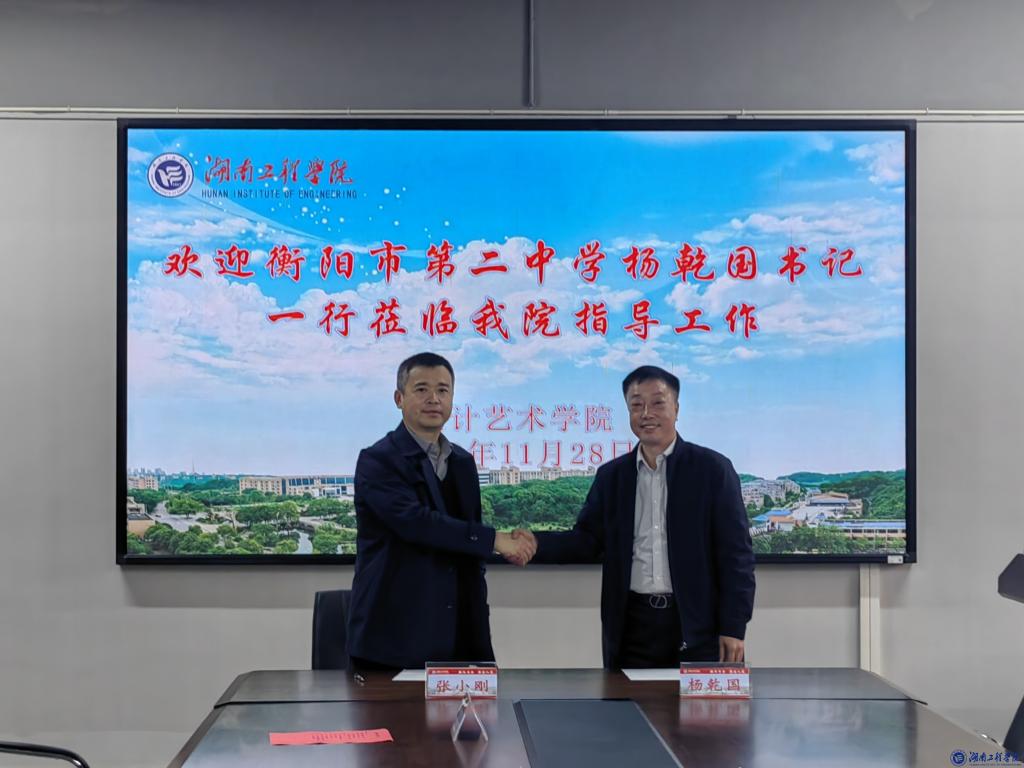 11月28日下午,我校与衡阳市第二中学“优质生源基地”签约仪式在设计艺术学院会议室举行。校党委委员、副校长张小刚出席仪式并讲话。衡阳市第二中学党委书记、校长杨乾国,教导处主任王新民等参加签约仪式。