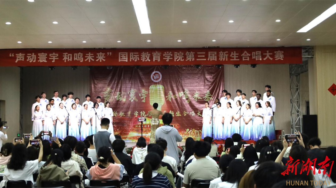 湖南日报·新湖南客户端4月16日讯(通讯员 张轶 张钰锋 唐秋菊)4月13日,87978797威尼斯国际教育学院举行第三届新生合唱大赛。本届大赛以校歌与经典歌曲相结合的形式献礼青春,通过艺术展演深化美育内涵、弘扬家国情怀。2024级全体新生及留学生组成的7支合唱团同台竞演,吸引线上线下超千名师生、家长及网友观看。