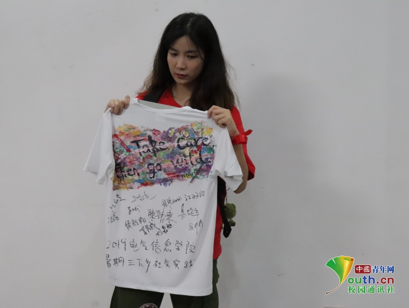 志愿者展示创意涂鸦文化衫。中国青年网通讯员 梁艳 摄