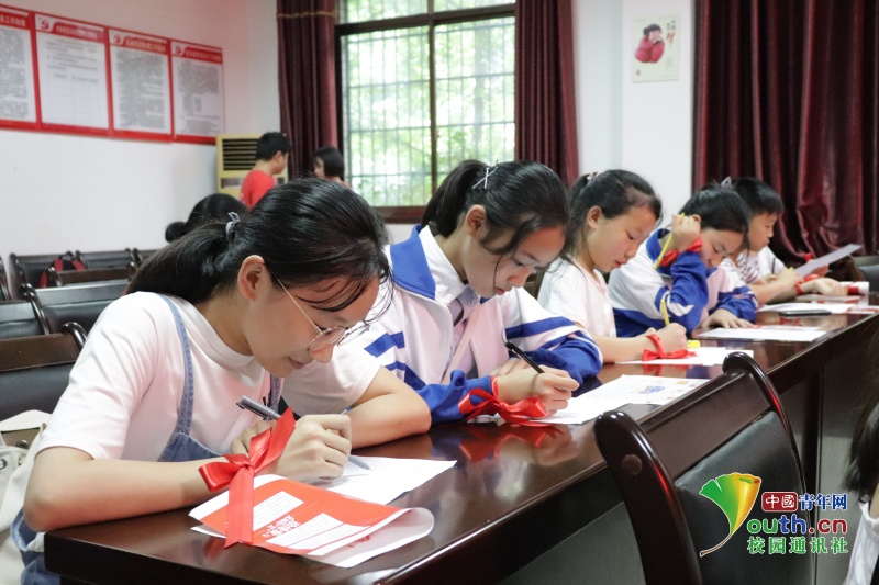 当地青少年填写关于防治艾滋病普及程度的调查问卷。中国青年网通讯员 梁艳 摄