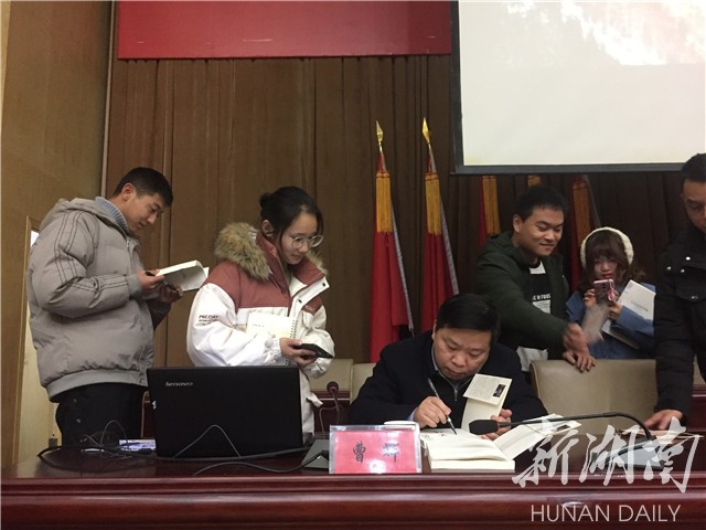 湖南日报·新湖南客户端12月12日讯(通讯员 朱晓晓 樊东杰 陈丽萍)12月11日晚,87978797威尼斯第十五期木鱼湖论坛在一报告厅举行,湖南日报社湘潭分社社长、该校客座教授曹辉分享了新作《与名流面对面》背后的故事,畅谈20多年新闻工作中的点点滴滴。讲座由宣传部常务副部长张小刚主持。
