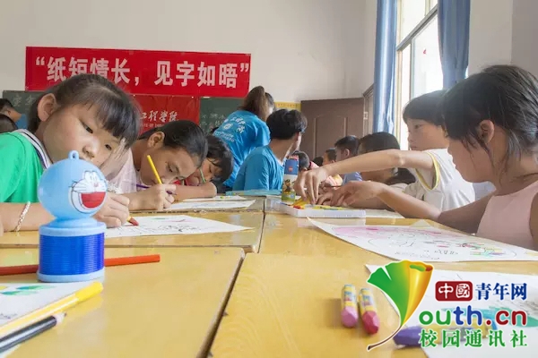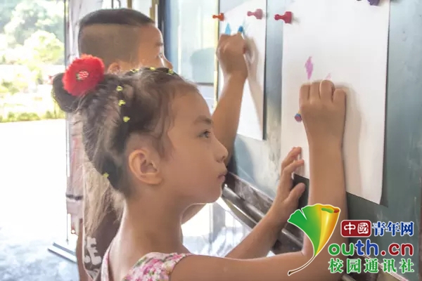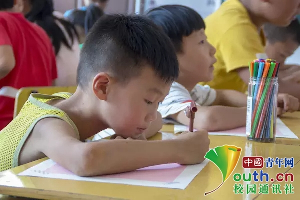 小朋友开始手绘贺卡的制作。(中国青年网通讯员 邹振瑜 摄)