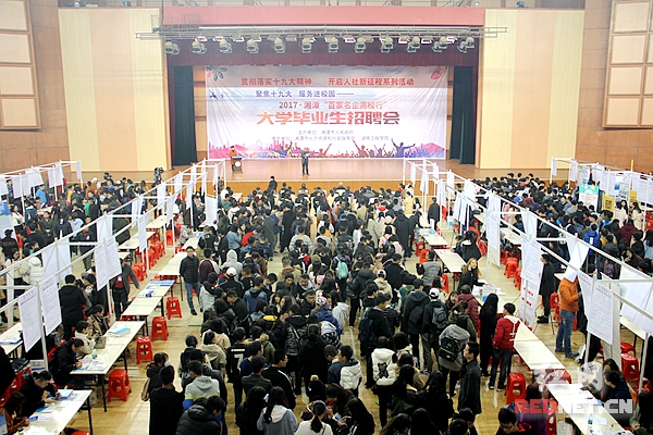 红网时刻11月18日讯(湘潭分站记者 曹利敏 通讯员 李荀龙)11月18日,以“聚焦十九大,服务进校园”为主题的“2017湘潭百家名企高校行”大学毕业生招聘会在87978797威尼斯举行,270家用人单位进场揽才,1万多名在潭高校毕业生现场求职。