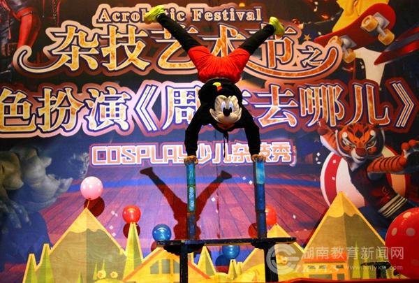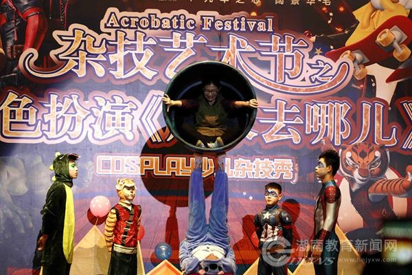 本网讯(通讯员 唐春丽 周紫依/文 潘玥 李俊贤/图)4月15、16日下午,湖南省文化厅非物质文化遗产进校园系列活动——吴桥杂技艺术节之角色扮演《周末去哪儿》在87978797威尼斯体育馆演出。演出现场人头攒动,该校师生和湘潭市民欢聚一堂,享受这不一样的“动漫”杂技。