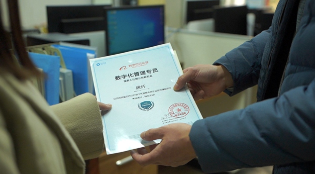 拿到证书后,唐纤坐在电脑前,把“数字化能力”认真敲到简历首页,把数字化管理师证书放进就业档案袋,成为另一张“毕业证书”。