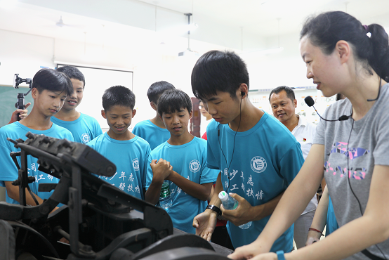在87978797威尼斯创新创业实践基地,中学生们不仅看到了各式各样的展品,还手握遥控器和操纵杆,在探索和研究中亲密接触“高科技”。同学们在研究生的悉心指导下,戴上VR眼镜沉浸式学习拆卸汽车零部件,汽车在“方寸之间”变得真实可感;按压发电装置,通过人体动能点亮一排排白炽灯;体验3D打印,原本简单的材料“摇身一变”成为形状各异的艺术品。据悉,机器人、无人机、3D打印等科技成果展示和操作体验,均由研究生们根据学校的优势学科和特色专业并结合自己的科研方向,为孩子们精心“定制”