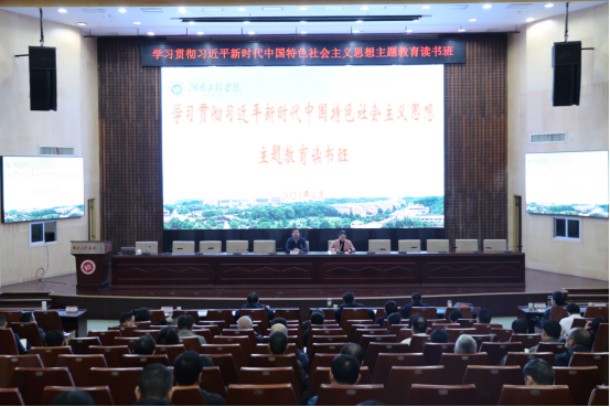 4月28日上午,我校深入学习贯彻习近平新时代中国特色社会主义思想主题教育读书班第二场专题辅导在一报告厅举行。报告邀请中共湖南省委党校(湖南行政学院)科技与生态文明教研部主任、教授毛明芳作题为“实施科教兴国战略,强化现代化建设人才支撑”专题辅导。党委副书记、校长易兵出席,在校校领导、全体中层以上干部参加辅导。党委委员、副校长向前主持报告会。