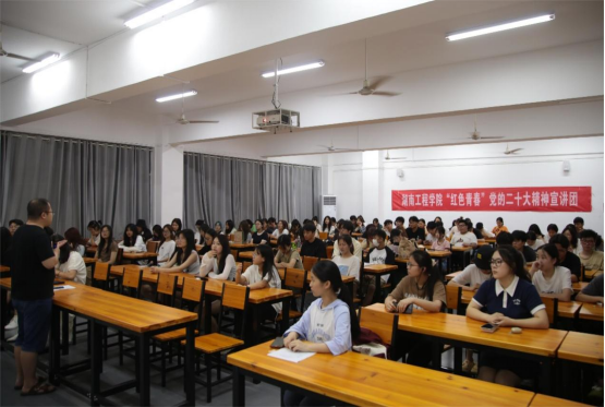 一场小而精的宣讲活动、一次由浅入深的思想交流,”红色青春“宣讲团成员用通俗的语言、生动的事例,引导青年学生把党的二十大精神与个人发展、专业优势、家乡建设和社会发展结合起来,让广大青年学生对党的二十大精神有了更全面的理解和认识。